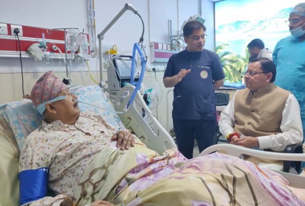 एम्स ऋषिकेश में सतपाल महाराज से मिले सीएम धामी