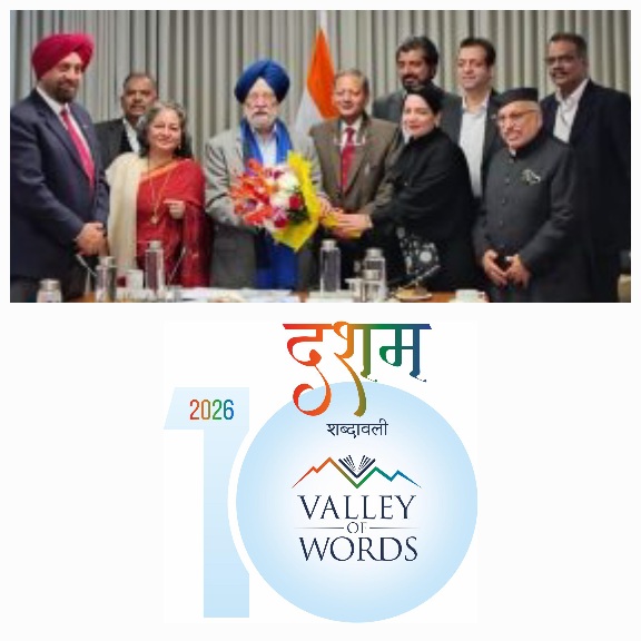 केंद्रीय पेट्रोलियम मंत्री हरदीप सिंह पुरी ने वैली ऑफ वर्ड्स साहित्य एवं कला महोत्सव (VoW~शब्दावली) के दसवें संस्करण के लोगो ‘दशम’ तथा वेबसाइट का विमोचन तथा VoW बुक अवार्ड्स 2026 के लिए नामांकन प्रारंभ की घोषणा की गई। श्री हरदीप पुरी ने अखिल भारतीय स्तर पर साहित्य एवं कला के व्यापक महोत्सव के आयोजन के लिए VoW की नेतृत्व टीम की सराहना की। साहित्यिक उत्कृष्टता के दस वर्षों के उत्सव के रूप में, वैली ऑफ वर्ड्स ने ‘दशम’ – अपने दशक पूर्ति के लोगो को प्रस्तुत किया, जिसका शुभारंभ माननीय मंत्री श्री हरदीप सिंह पुरी द्वारा किया गया।