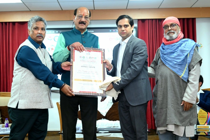 कैबिनेट मंत्री श्री सुबोध उनियाल ने उत्तराखंड के विकास में अमूल्य योगदान देने वाली वैज्ञानिक संस्थाओं को सम्मानित किया जिनमें प्रमुख रूप से इंडियन इंस्टिट्यूट ऑफ पेट्रोलियम के निदेशक डॉक्टर हरिंदर सिंह बिष्ट, ओएनजीसी लिमिटेड के हेड कॉर्पोरेट नीरज कुमार शर्मा, उत्तराखंड जल विद्युत निगम के प्रबंध निदेशक डॉक्टर संदीप सिंघल, सौगंध पौधा केंद्र के निदेशक डॉक्टर नृपेंद्र चौहान, नाबार्ड उत्तराखंड के मुख्य महा प्रबंधक पंकज यादव, सॉफ्टवेयर टेक्नोलॉजी पार्क्स ऑफ इंडिया के निदेशक डॉ संजय गुप्ता, जूलॉजिकल सर्वे आफ इंडिया के क्षेत्रीय निदेशक डॉक्टर गौरव शर्मा जेएसडब्ल्यू एनर्जी के निदेशक ज्ञान भद्र कुमार को स्मृति चिन्ह, अवॉर्ड सर्टिफिकेट और उत्तराखंड मैं पाई जाने वाली बिच्छू घास के रेशे से बना अंग वस्त्र भेंट किया।