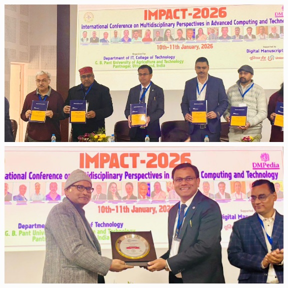 गोविंद बल्लभ पंत कृषि एवं प्रौद्योगिकी विश्वविद्यालय, पंतनगर में सूचना प्रौद्योगिकी विभाग द्वारा 10 व 11 जनवरी 2026 को दो दिवसीय अंतरराष्ट्रीय सम्मेलन IMPACT-2026 का आयोजन किया गया। सम्मेलन में डॉ. मनोज गोखले, अधिवक्ता, भारत सरकार (माननीय उच्चतम न्यायालय) एवं विधिक प्रतिनिधि, मध्य प्रदेश व छत्तीसगढ़ सरकार ने मुख्य अतिथि के रूप में शिरकत की।
